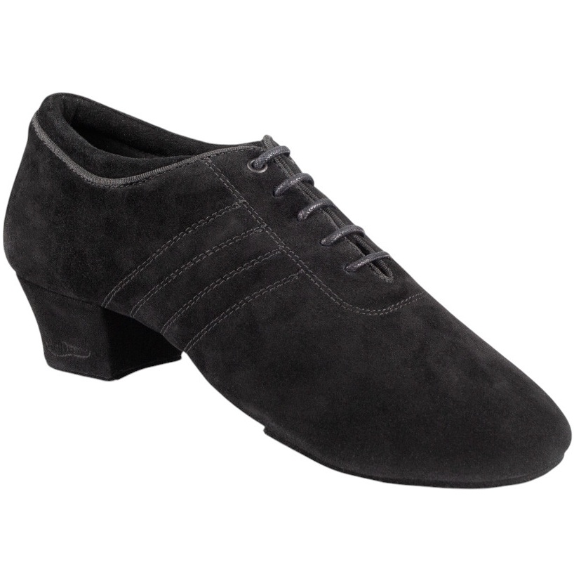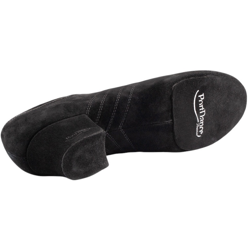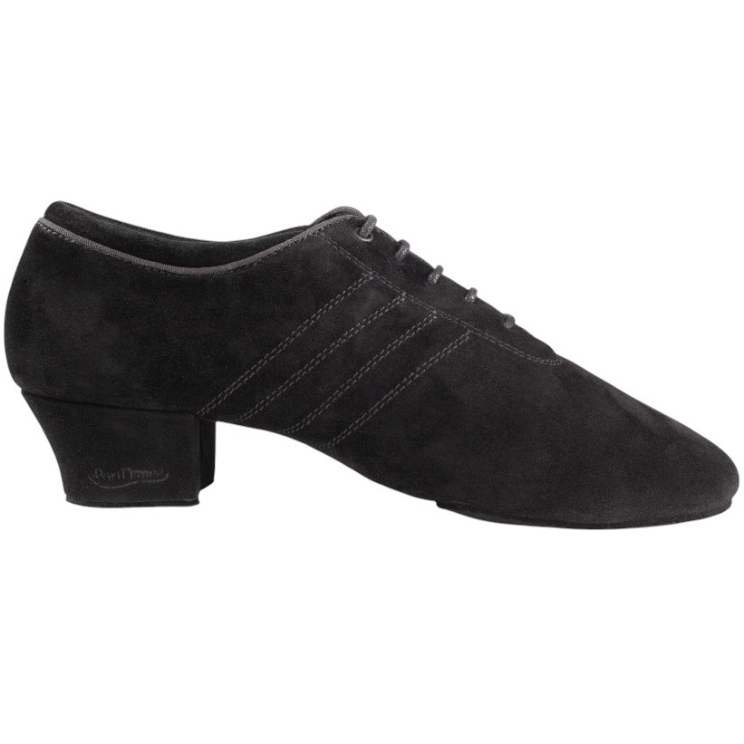 Der Latein-Herren/Damen-Trainer Schuh PD008 Premium aus dem Hause Portdance aus schwarzem Nubuckleder mit vier Ziernähten. Mit 4cm Absatz und geteilter Rauledersohle.