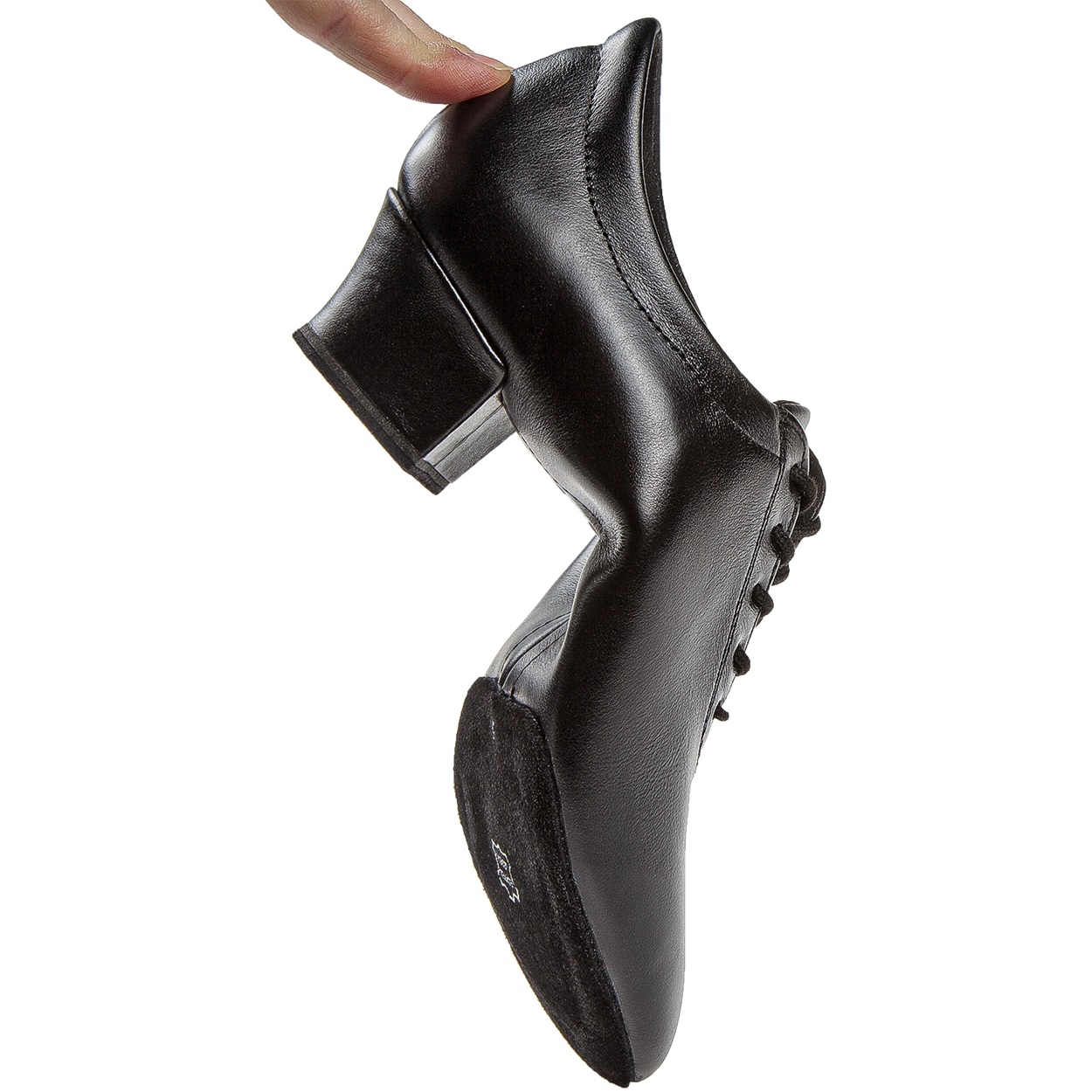Mod. 185 Diamant Damen Trainer Tanzschuhe Made in Germany handgefertigt in hochwertiger Turniertraining Ausführung mit 5-Loch Schnürung und gepolstertem Schaftrand. Dieser sehr flexible Tanzschuh mit Diamant Multiflex Fußbett wird in der Weite F (Normalweite) mit geteilter Laufsohle und einem Schock absorbierenden 3,7 cm Latein Absatz hergestellt. Als Innenauskleidung wird ein atmungsaktives, antibakterielles und Feuchtigkeit absorbierendes Microfaser aus italienischer Premium-Herstellung eingearbeitet. Für das Obermaterial aus schwarz Echtleder wird ein hochwertiges Rindnappa aus Italien verwendet.