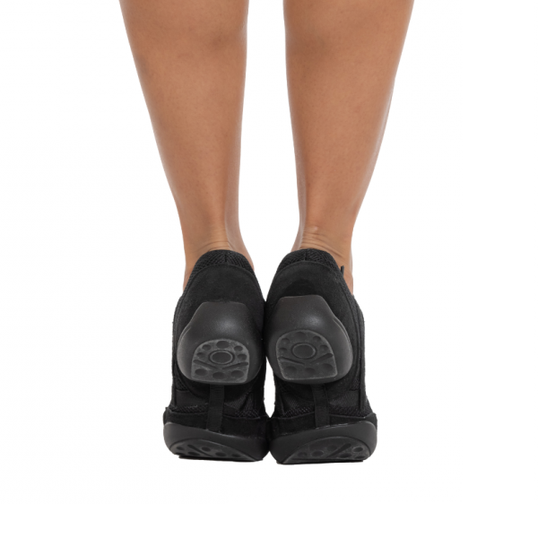 Der Tanzsneaker Rapha aus dem Hause Dansez-Vous in einer Kombination aus schwarzem Velourleder und Mesh mit geteilter Kunststoffsohle