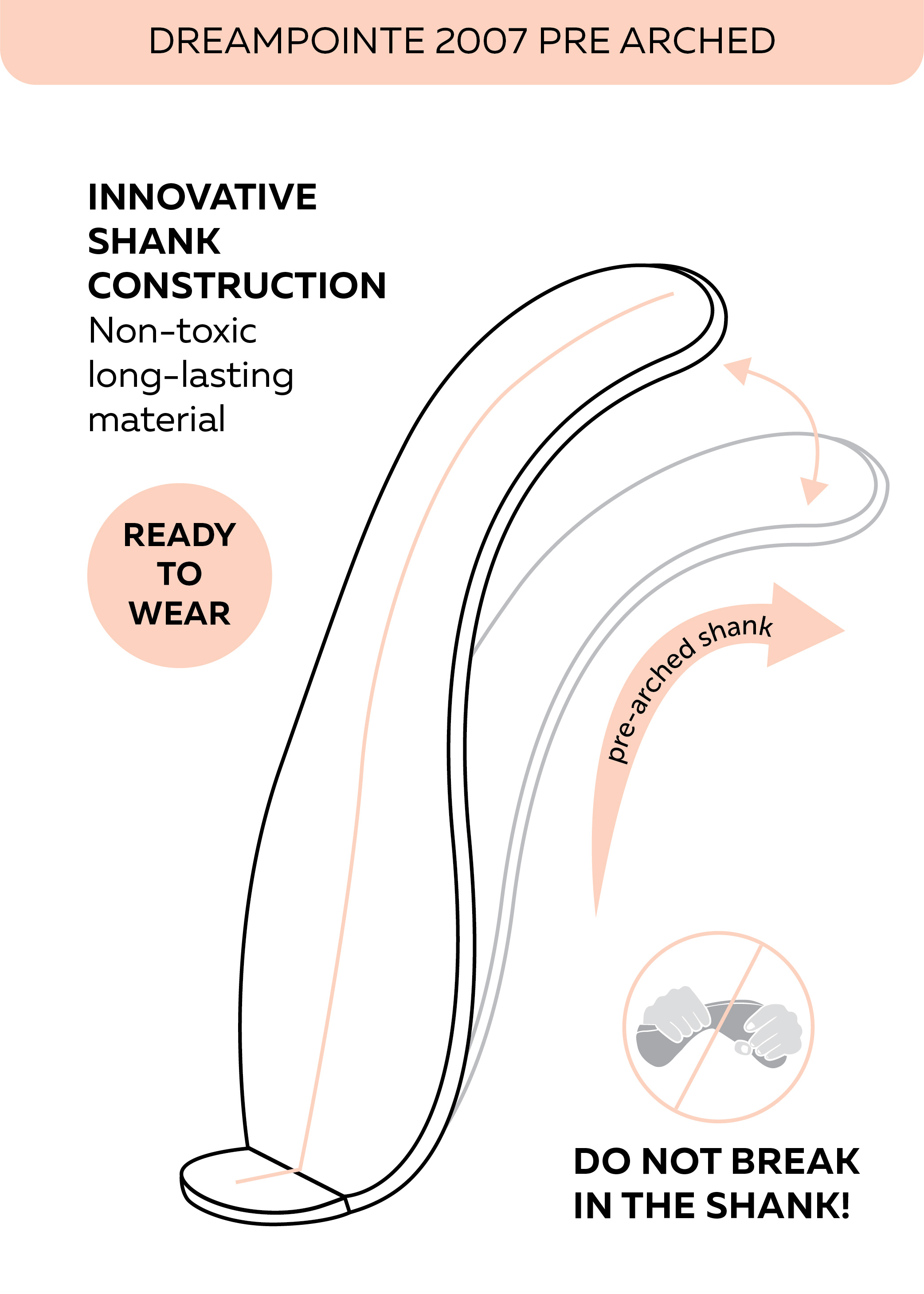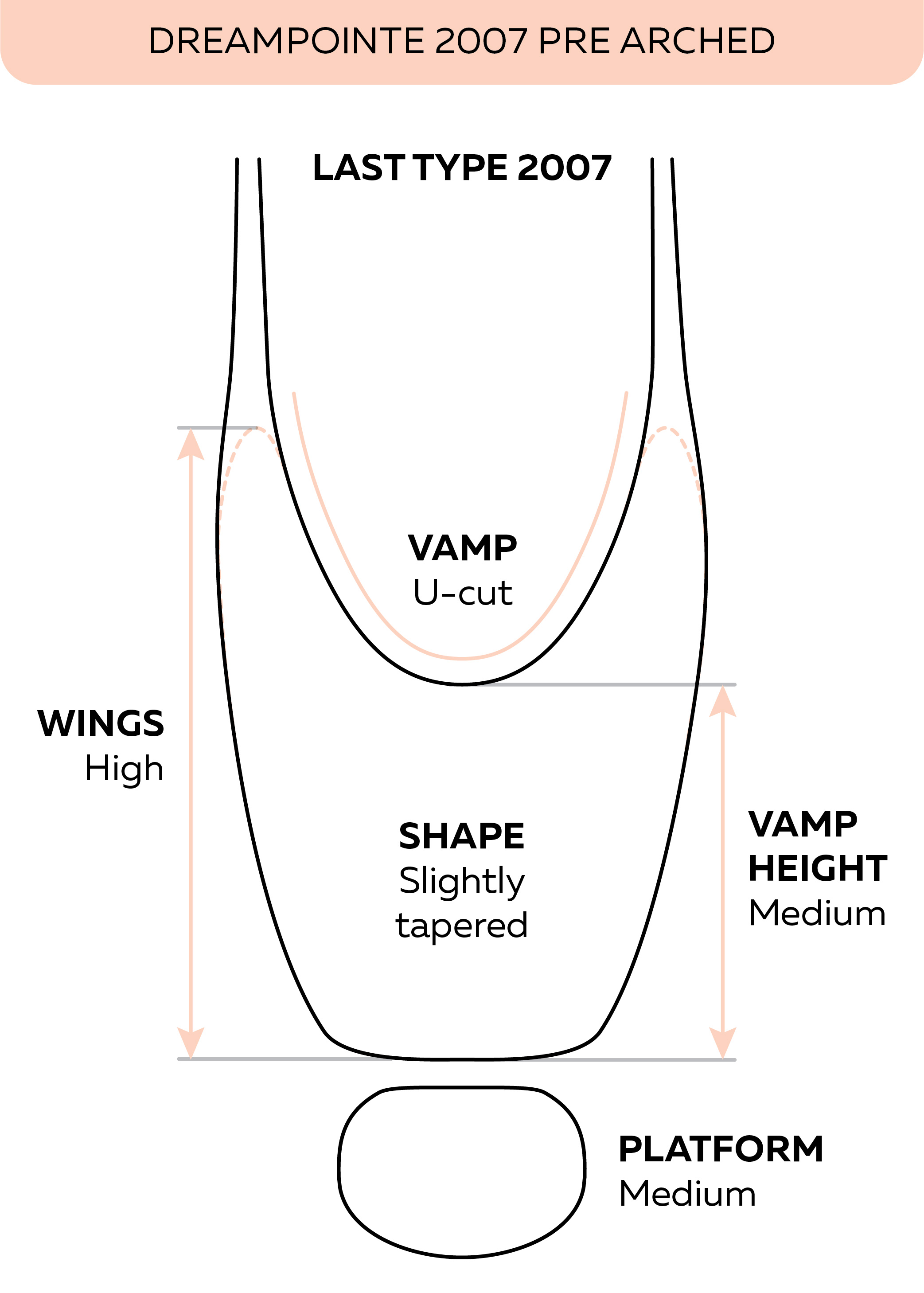 ALLURE ist dem Modell Dream. Pointe sehr ähnlich, jedoch mit vorgewölbtem Schaft.