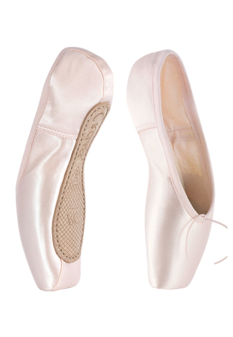 Der RC24 von Russian Class (R-Class) ist das Leichtgewicht der RC-2 Linie. Mit der Form liegt er zwischen der RC10 und der RC30er Serie. Dieser Spitzenschuh ist geeignet für schmale Füße mit einer etwas spitzeren Zehenreihe (griechische Form), wobei meist der zweite Zeh ein wenig länger ist als der dicke Zeh und der Mittel- oder Ringzeh. Aber auch agyptische Fußformen kommen sehr oft sehr gut mit diesem Modell zurecht. Der Vamp (das Blatt) ist relativ lang und flach , so daß auch flache Füße mit langen Zehen perfekt darin aufgehoben sind. Die Plattform ist eher mittel, so daß der Spitzenschuh im ganzen noch sehr zierlich wirkt. Die Ferse ist schmal geschnitten, ähnlich dem Sleek Fit von Gaynor Minden. Die Sohle ist ein wenig gebogen (medium arch) und 4/4 Länge. Gemacht aus hochwertigem Atlas Seiden Satin ist er nicht so blaß wie die Jewels Serie von R-Class (Rubin), aber auch nicht so lachsrosé wie die meisten Spitzenschuhe von Bloch oder Capezio für den Spitzentanz. Es ist eher blaß lachsrose. Da die RC Serie, was die Sohlen angeht im Vergleich zu den meisten Herstellern ein wenig fester sind, lagern wir diese Serie nur in Soft und Medium. Die Sohle hat ein rautenförmiges Profil, die Spitze ist ohne Falten genäht (ähnliche Gaynor Minden) - in einer Technik wird die äußerste Hülle des Schuhes aus Satin erst fertig genäht, und dann komplett über die vorbereitete Box aus Naturmaterialien gestülpt. Alle verwendeten Materialien sind auf natürlicher Basis hergestellt. Sogar der Kleber wird nach einem alten Rezept vor der Verwendung in der Fabrik frisch gekocht.