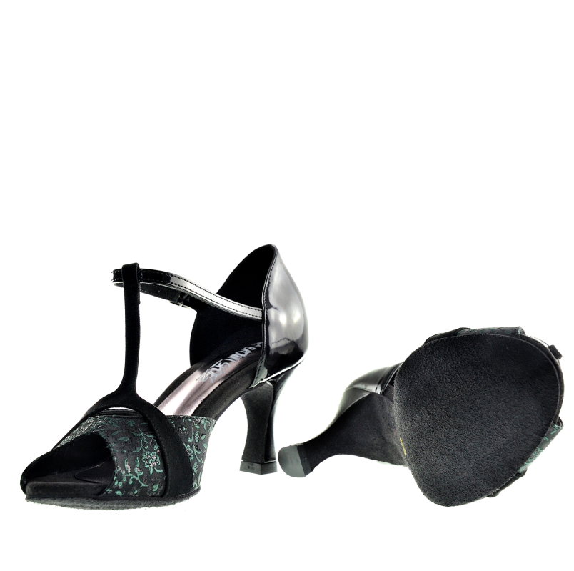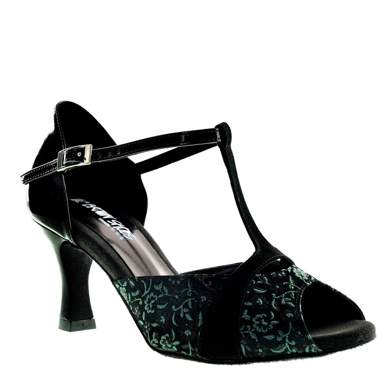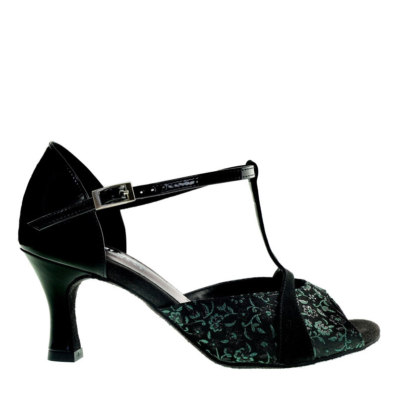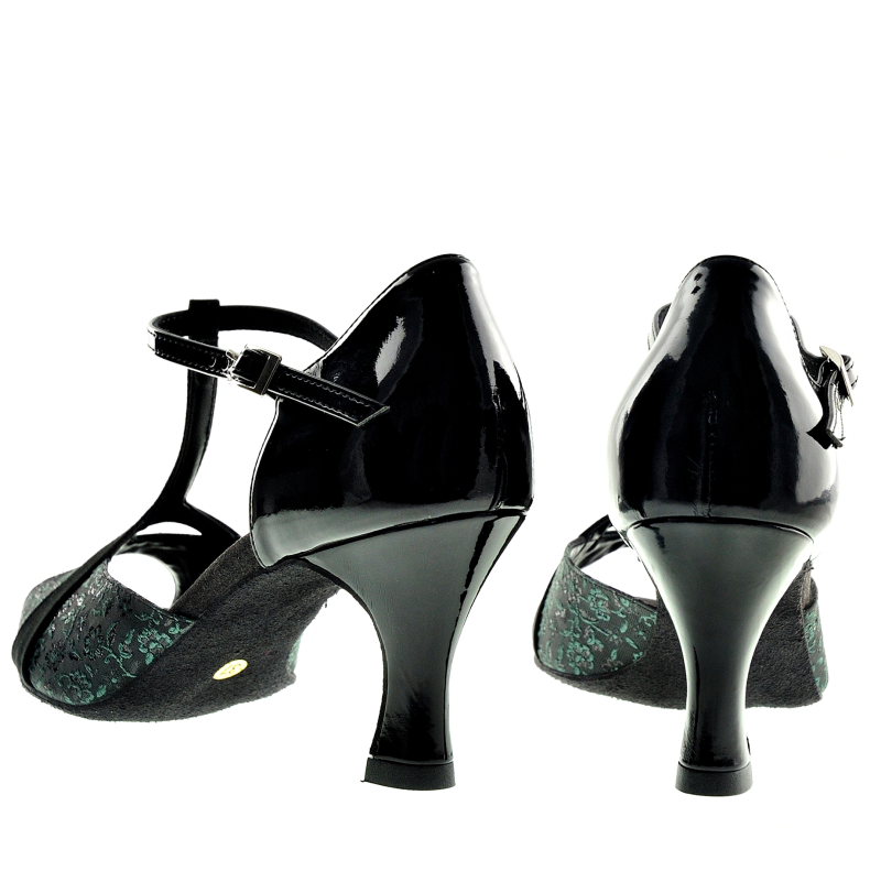 Aus der ersten veganen Tanzschuhkollektion in Europa "Mr. & Mrs. Brown" hier das Modell Bonnie - Schwarzes veganes Wild- und Glattleder (beides Kunstleder) in Kombination mit einem Einsatz aus schwarzem leinenähnlichen Material mit grünem Blümchendekor - ein 70 mm Absatz, schwarz lackiert runden das Design ab - gute Statik lassen Ihren Fuß nicht ermüden, denn besonders ausgearbeitet sind die Stellen unter dem Längs- und Querewölbe im Fuß, - dick gepolstert lassen Euch diese Schuhe tanzen wie auf Wolken - Dance Affairs Hamburg ist stolz, als erster diese Kollektion im Showroom zu präsentieren - und bist Du verliebt in einen Veganer? - siehe dazu auch das passende Herrenmodell "Clyde" ...