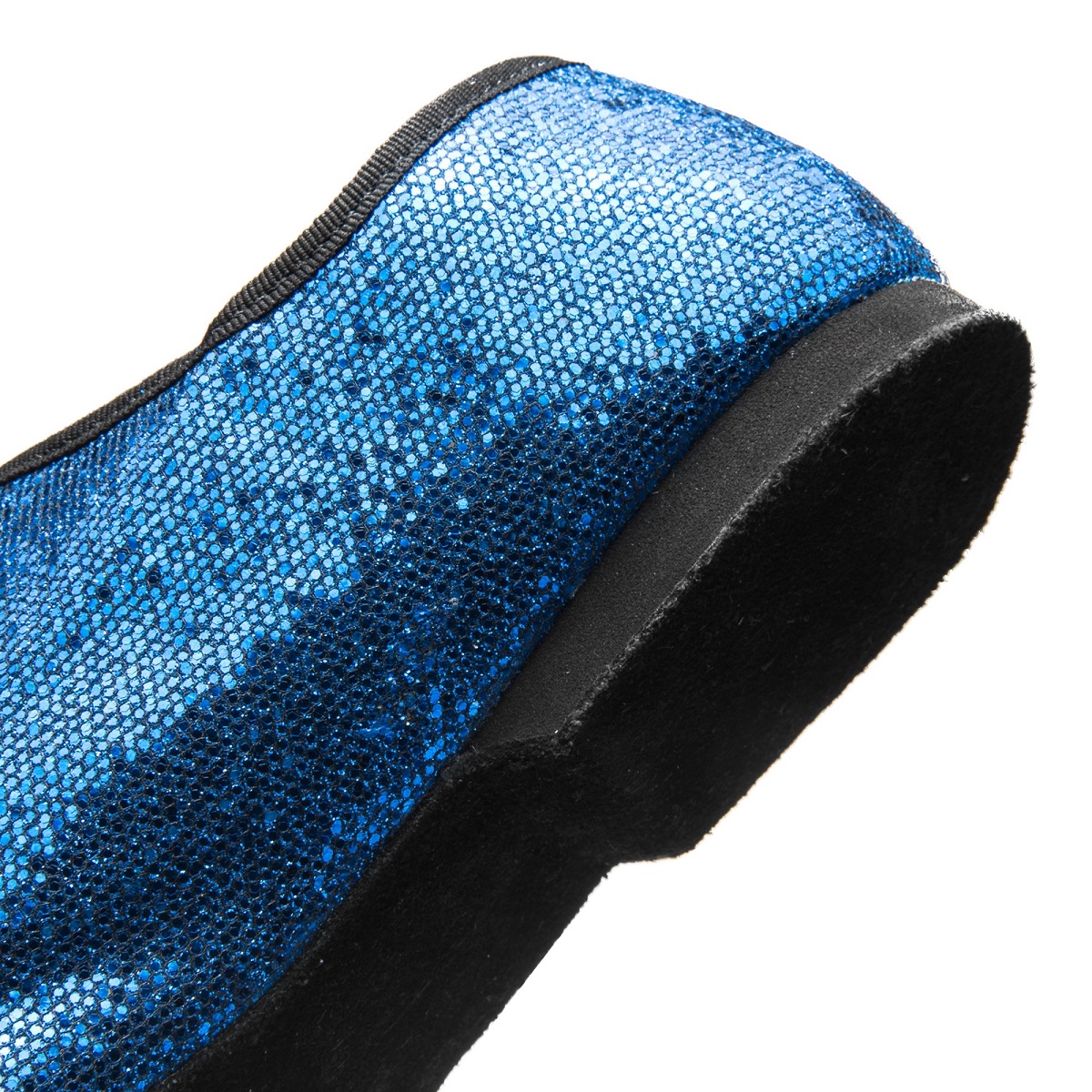 Der Glanz-Spinnstoff Jazzschuh JZ79 aus dem Hause SoDanca in Gold, Blau, Rot, Schwarz oder Silber. Mit durchgehender Wildledersohle und 1 cm Absatz.