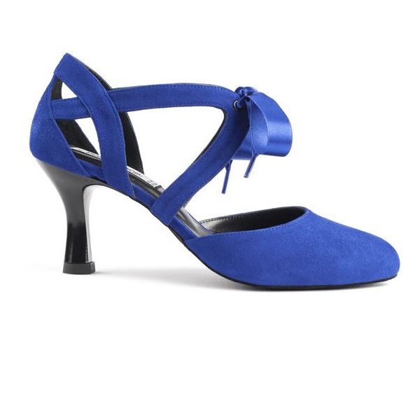 Das Modell PD125 aus dem Hause PortDance in schwarzem, bordeauxrotem, blauem oder türkisgrünem Nubuckleder. Mit eleganter Satinbandschnürung, Wildledersohle und 6,5 cm Absatz.