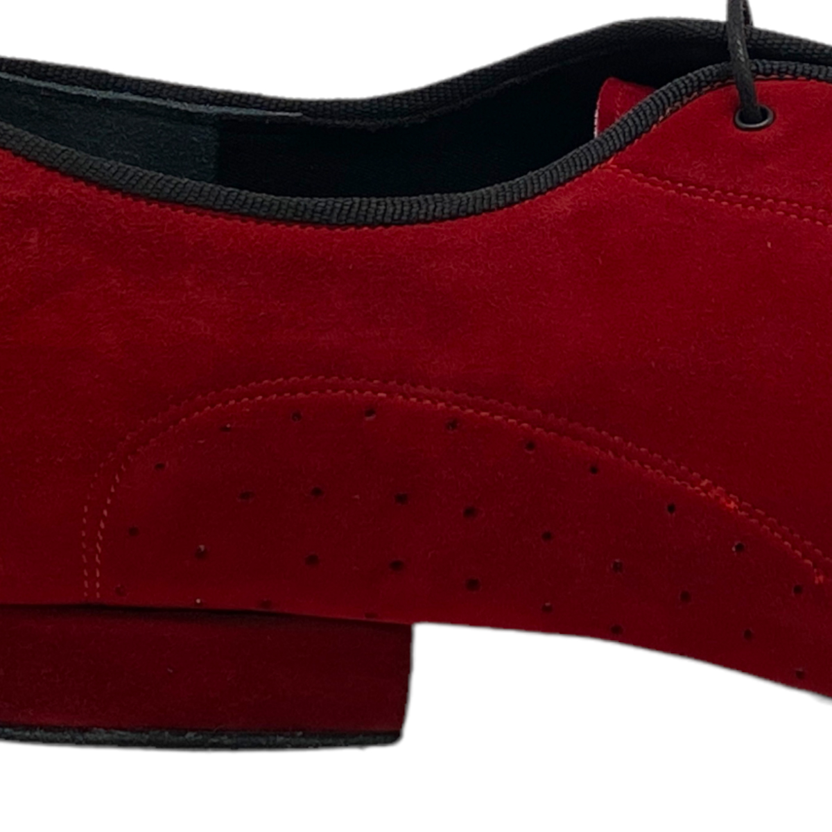 Weicher, sehr flacher Tanzschuh mit geteilter Sohle in Wildleder mit weichen Wildledertanzsohlen, Absatzhöhe max 15 mm. Es ist ein sehr leichter und flexibler Tanzschuh mit einer Perforation seitlich unten für gute Belüftung.