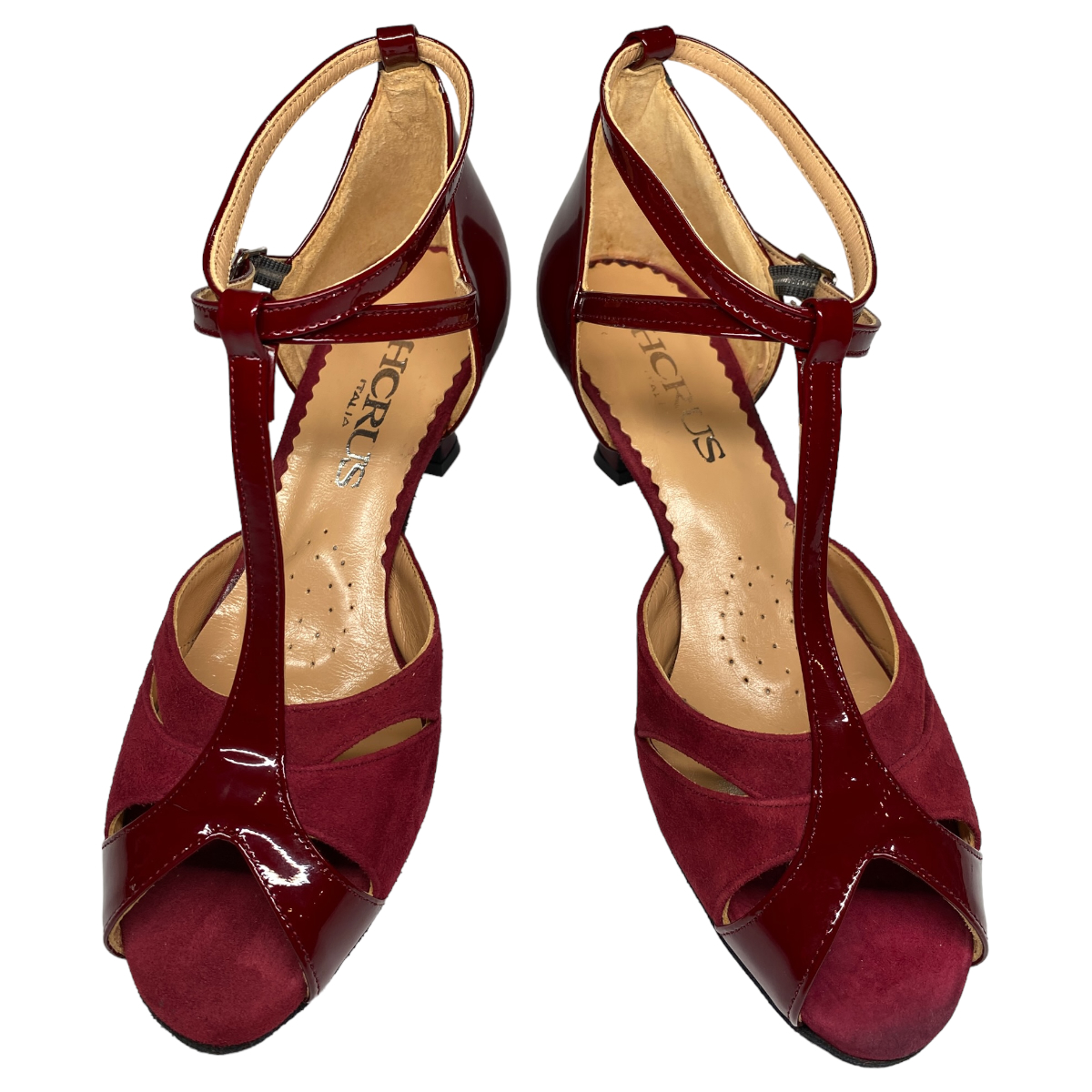 Ein italienischer Tanzschuhklassiker - der BOCA DE LEONE (Löwenmaul) - so beliebt durch seine extrem gute Passform - hier in einer Kombination aus Lack- und weichem Wildleder mit einer Absatzhöhe von wahlweise 60 mm, griffiger Wildledersohle und guter Polsterung zwischen Lederdecksohle und Tanzsohle, alle Materialien und Leder in Europa gefertigt, gegerbt und gefärbt - nach europäischen DIN Normen natürlich absolut giftfrei - dieses Modell führen wir auch in anderen Farbvarianten - z.B. Platin, gold oder weiß Satin zum Heiraten, sowie in anderen Absatzhöhen je nach Farbe..