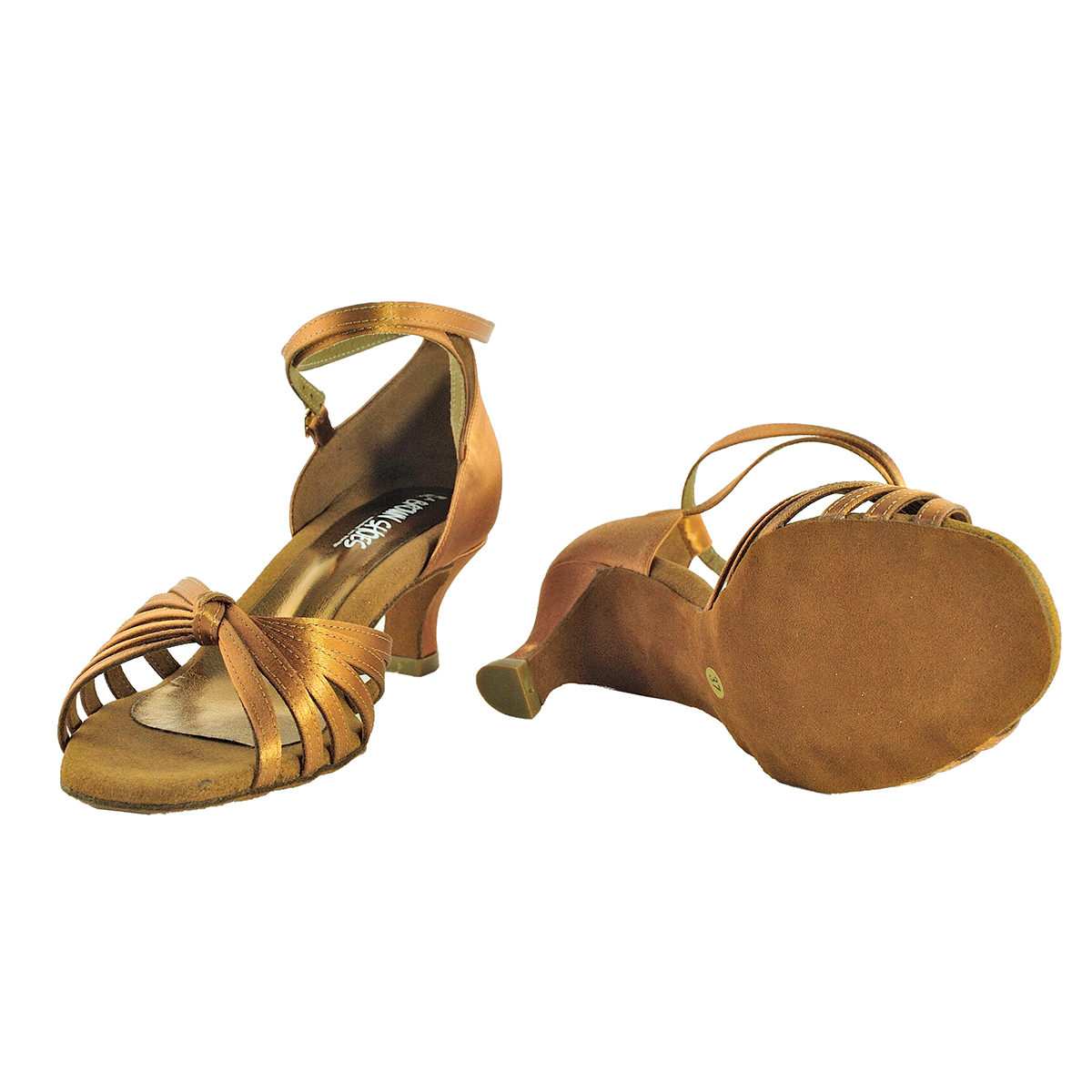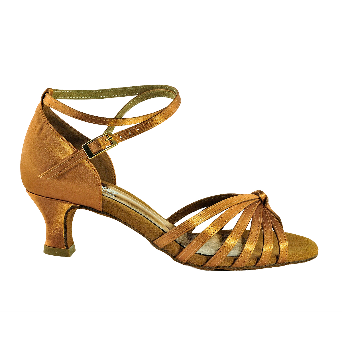 "Bobbie" - die vegane Latein Sandale mit Riemchen über dem Spann in tan Satin - passend zu jedem Kleid.. - schlichter, schöner Tanzschuh, mit nicht so hohem Absatz (50 mm) aber auch höher mit 70 mm Absatz bestellbar, langlebige Microfasersohle mit extrem gut ausgearbeitetem Fußbett