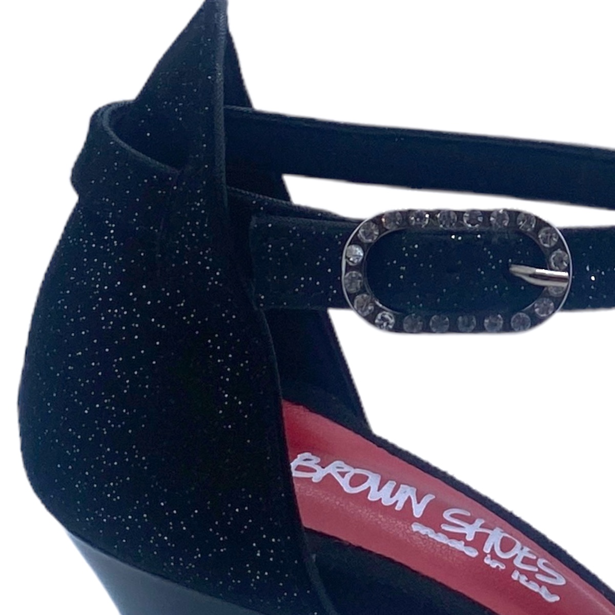 Nicht nur fürs Frühstück bei Tiffany - einen glänzenden Auftritt sichert Ihnen Modell HOLLY LOW mit der Absatzhöhe 70 mm mit schöner Strassverzierung am doppelten T-Steg, raffiniert die Tunnelführung für den Verschlussriemen, so läuft der Riemen nicht über die Achillessehne, sehr gut ausgearbeitetes Fußbett und langlebige Microfasersohle... made by Mr. & Mrs. Brown, der weltweit ersten so breit gefächerten veganen Tanzschuhkollektion - stolz präsentiert exklusiv von Dance Affairs Hamburg
