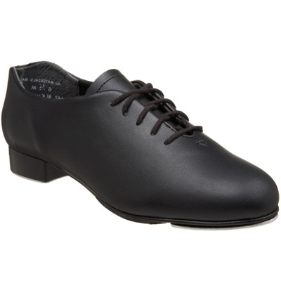 Das Auslauf-Modell Tapster aus dem Hause Capezio aus schwarzem Kunstleder in Größe 35 (Herstellergröße 2,5). Mit bereits vormontierten Capezio Steppplatten und 2cm Absatz.