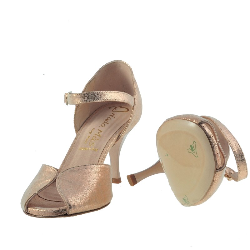 Der Tangoschuh Cosmo Cipria aus dem Hause Nada Màs in Lachs. Mit 7cm Absatz, Glattledersohle und traumhaft weiche Polsterung. Die 5-fache Polsterung lässt Dich nicht nur die ganze Nacht durchtanzen (egal ob drinnen oder draussen - denn die Ledersohle ist auch für Milongas draussen geeignet), sondern lässt Dich nach Deiner Hochzeit schmerzfrei über die Schwelle...