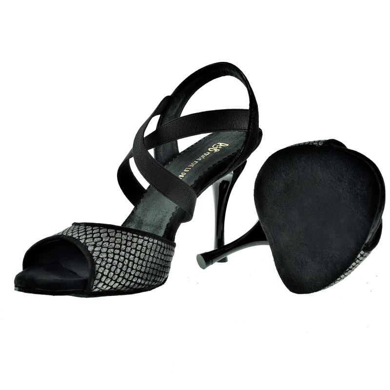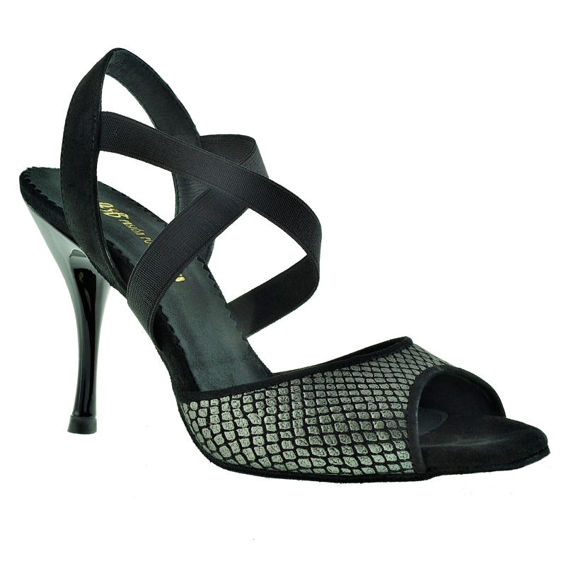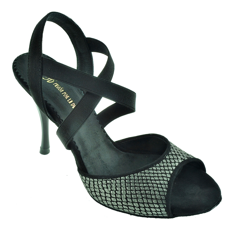 Unser beliebtes Modelle LA TANA. - hier in einer paspellierten Variante. Die eisenfarbene Ledervariante "Thor" trifft butterweiches schwarzes Wildleder. Die praktischste Erfindung seit es Tangoschuhe gibt... schnell rein und schnell raus. Kein lästiges Auf- und Zumachen mehr in der halbdunklen Milonga, das Elastik ist haltbar und engt nicht ein. . In LA TANA schlüpfst Du in Sekunden und verpasst keinen Takt Deiner Lieblingstanda. Hier die Variante /A mit schmalerem Elastik. 90mm Absatz. Die Sohle wie immer extrem gut abgeschäumt mit einer Schäumung mit hoher Dichte. So bleibt sie lange schön stabil, pflanzengefärbt in Europa. Eine griffige Wildledersohle und gute Statik, immer groß geschrieben bei Porteño & Bailarina. Die Slingferse ist aus schwarzem Wildleder gefertigt. Achtet darauf, das unsere Absätze mit den Grössen wachsen. Ein Absatz = 90mm wird standardmäßig bei Grösse 37 mittig gemessen und wächst langsam um Millimeter mit der Grösse mit, damit die Statik von P&B erhalten bleibt.