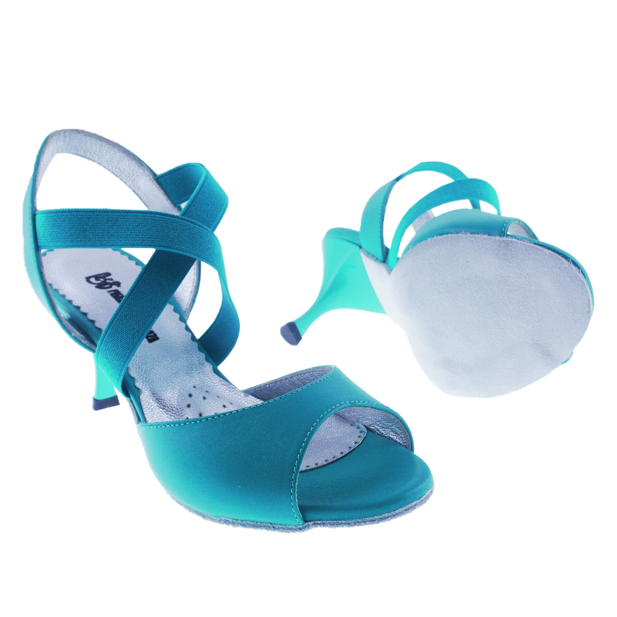 Die praktischste Erfindung seit es Tangoschuhe gibt... schnell rein und schnell raus mit den Modellen der "Elasticos"-Serie. Kein lästiges Auf- und Zumachen mehr in der halbdunklen Milonga. In LA TANA schlüpfst Du in Sekunden und verpasst keinen Takt Deiner Lieblingstanda. Hier eine sehr flache Variante mit nur 60 mm Absatz - für große Frauen oder solche, die keine High-Heels mögen, aber trotzdem nicht auf einen schöben Tangoschuh verzichten möchten, Die Sohle wie immer extrem gut abgeschäumt mit einer Schäumung mit hoher Dichte. So bleibt sie lange schön stabil. Weiches Nappaleder in der Farbe matt-türkis, pflanzengefärbt in Europa, mit metallisierenden Elastik-Straps über dem Spann. Eine griffige Wildledersohle wie auch der nicht so hohe Absatz lässt diesen Tangoschuh auch in normalen Tanzbereich Anwendung finden, wie z.B. Tanzschule oder zum Salsa..