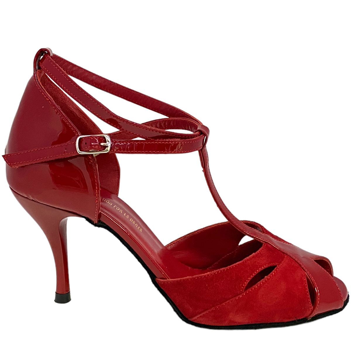 Modell 415 (Tita) ein Allrounder, - in der Farbe Bordeaux, Schwarz oder Rot - gerne als Basic genommen, mit Wildledersohle lagernd (begrenzt oder auf Lieferzeit auch mit Glattledersohle - bitte anfragen oder den Filter nutzen) - dieser Tangoschuh hat seinen Einzug in die Salsaszene gefunden, da er sich durch hohe Bequemlichkeit und gute Statik auszeichnet verstärkter Acrylabsatz, verschiedene Höhen und Absatzformen möglich, weich abgepolstert durch eine gute Poronschäumung mit hoher Dichte. Hier die Variante mit 80 mm (gemessen diagonal hinten inkl. Absatzflecken)