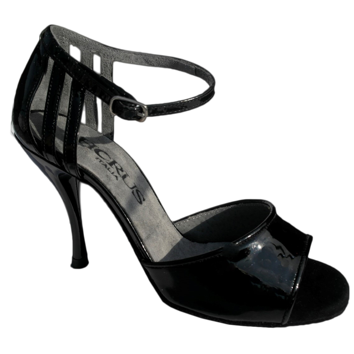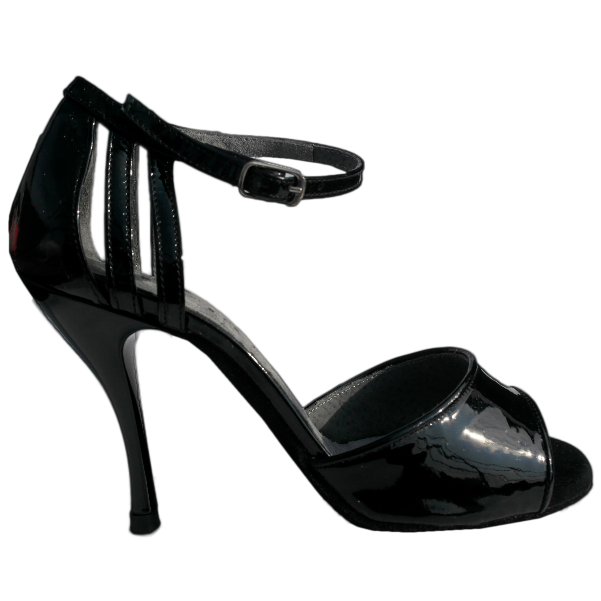 Schmaler Damen Tangoschuh in schwarzem Lackleder mit 90 mm Absatz, weichher Wildleder Tanzsohle... mehr