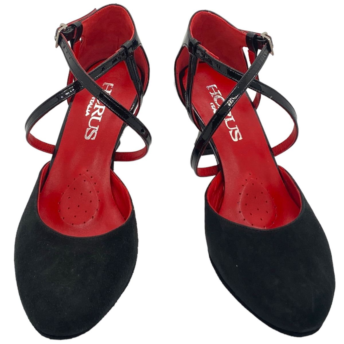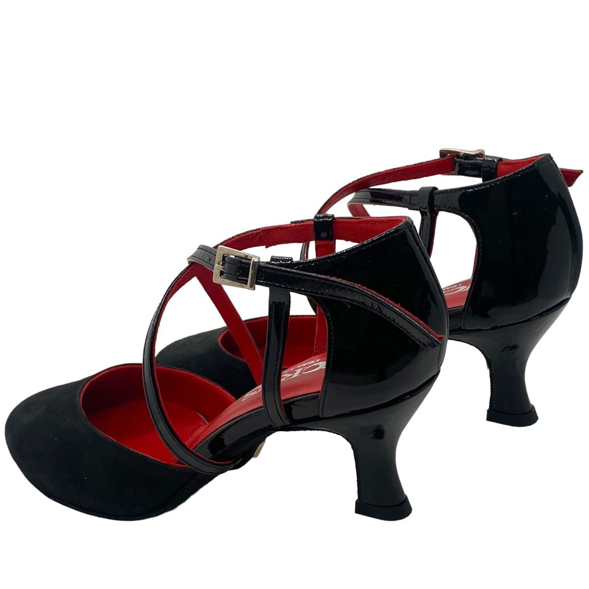Duotone Tanzschuh in einer Kombination von Soft-Wildleder und Lackleder, 60 mm Absatz und griffiger Wildledersohle, weiche Innensohle, Futter und Obermaterial aus pflanzengefärbten Leder, italienische Handarbeit - ein Klassiker und einer unserer Topseller auf Grund seiner guten Passform.