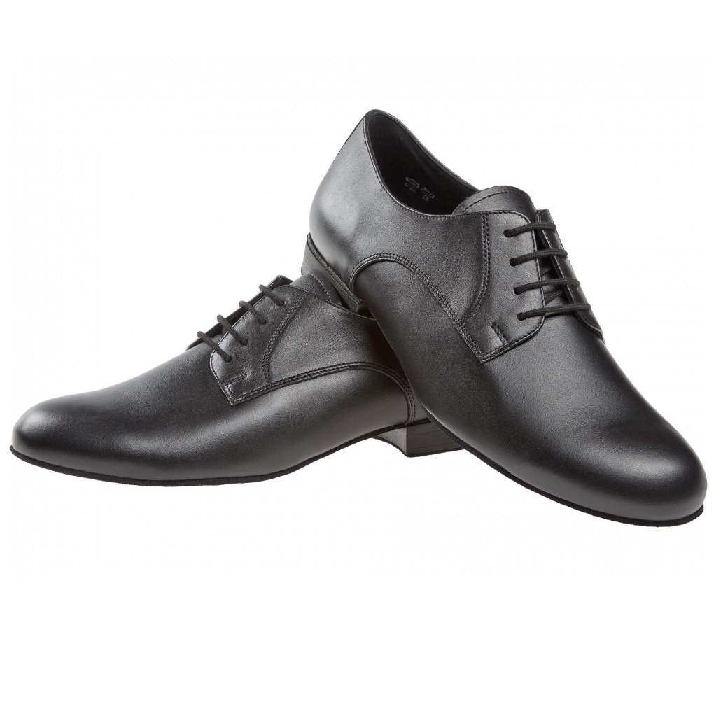 Mod. 179 Diamant Herren Tanzschuhe Made in Germany handgefertigt in klassischer Plain Derby Ausführung mit offener 4-Loch Schnürung. Dieser Tanzschuh wird in der Weite H (bequem) mit einem Schock absorbierenden 2 cm Standard Absatz hergestellt. Als Innenauskleidung wird ein atmungsaktives, antibakterielles und Feuchtigkeit absorbierendes Microfaser aus italienischer Premium-Herstellung eingearbeitet. Für das Obermaterial aus schwarz Echtleder wird ein hochwertiges Rindnappa aus Italien verwendet.