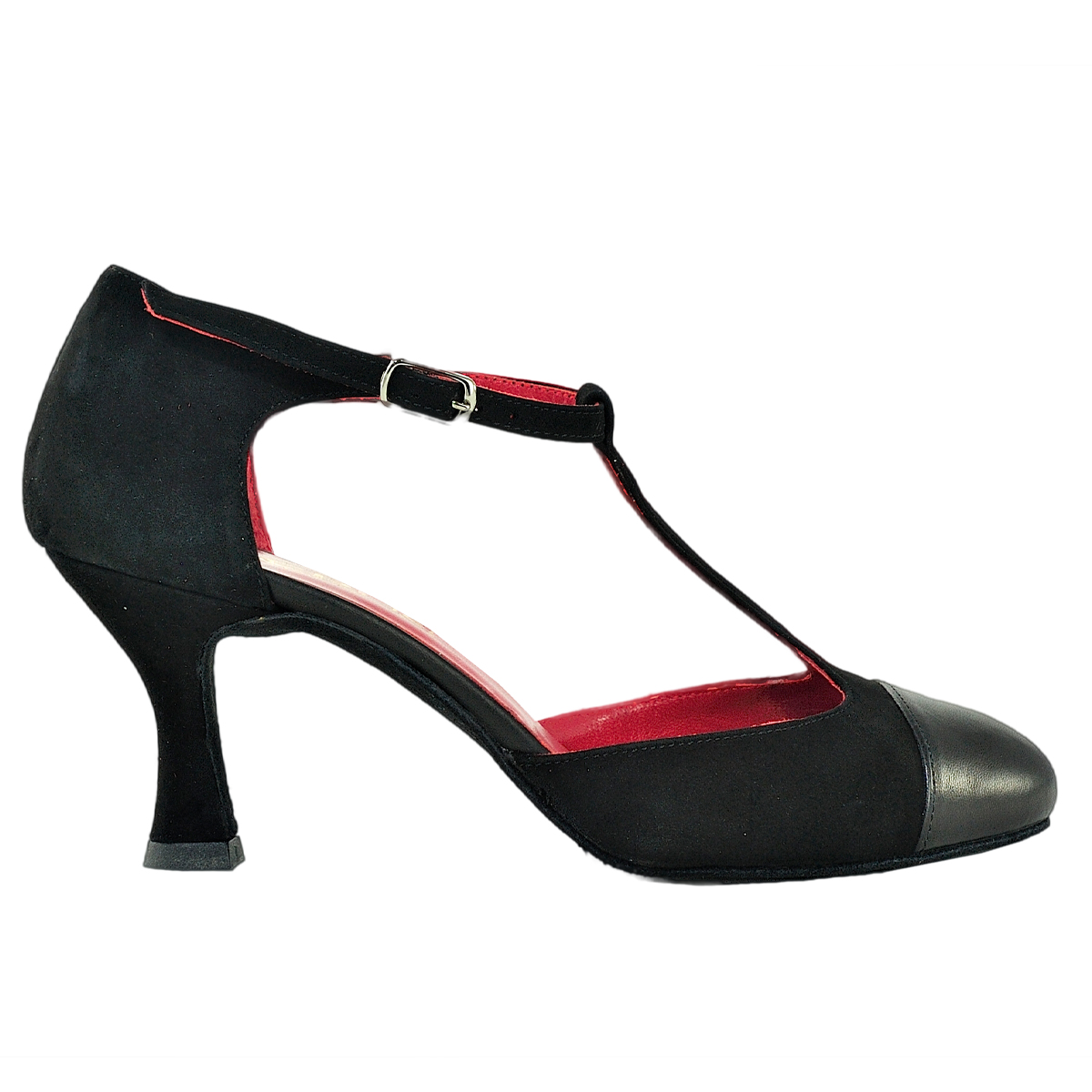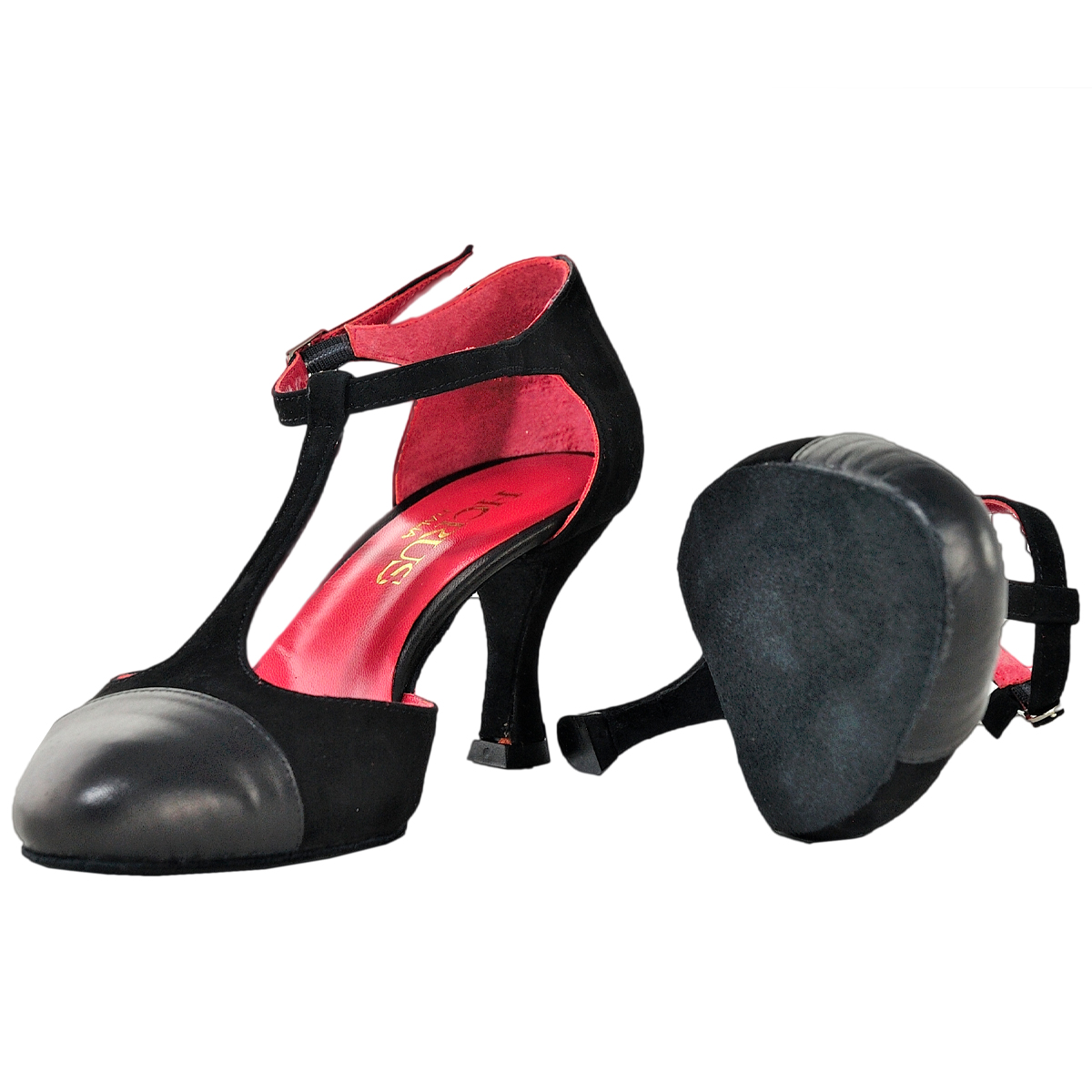 Schöner Damen Tanzschuh mit Mittelsteg aus einer Kombination von weichem Nappaleder und Wildleder. Rotes Innenfutter und griffige Wildleder Tanzsohlen sowie die sehr gut abgeschäumte Innensohle lässt Deine Füße wie auf Wolken tanzen. Dieser Schuh ist ein Allrounder - ein toller Tango Argentino Einsteiger-Schuh und auch für die Tanzschule für alle Tanzarten geeignet. Nicht zu hoch mit seinem 60 mm Absatz ist er für jung und alt perfekt.