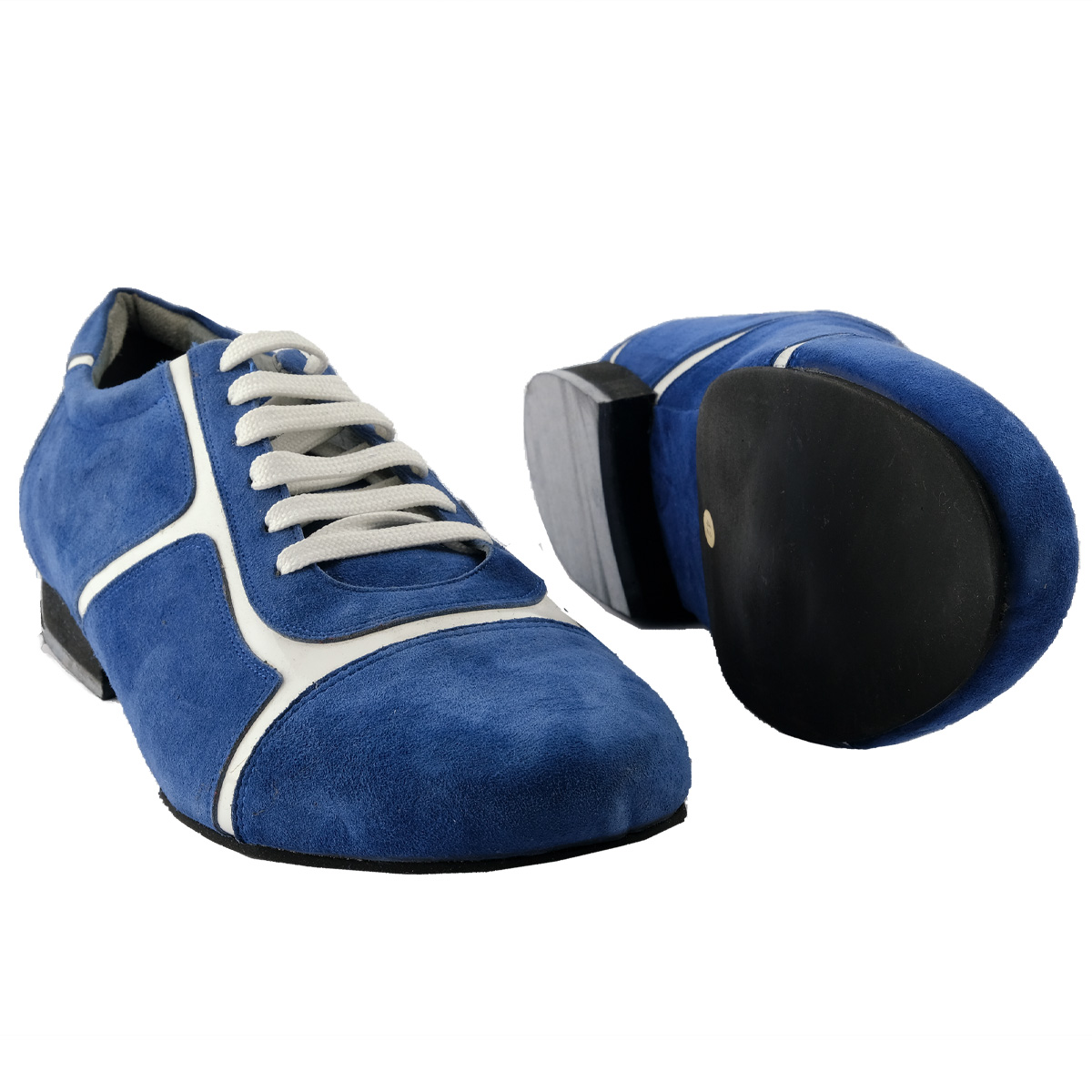 Aufwendiger Dance Sneaker in Wildleder mit Kontrast-Einsätzen, weich gepolstert - Leder pflanzengefärbt und weich - geteilte Sohle leicht gummiert oder Wildleder für sehr rutschige Böden (bitte anfragen). Dieses Modell findet seinen Einsatz in allen Tanzbereichen, tanz mit ihm Tango, Salsa oder in der Tanzschule Latein- oder Standardtänze (Practice) - er ist sportlich, perfekt zur Jeans.