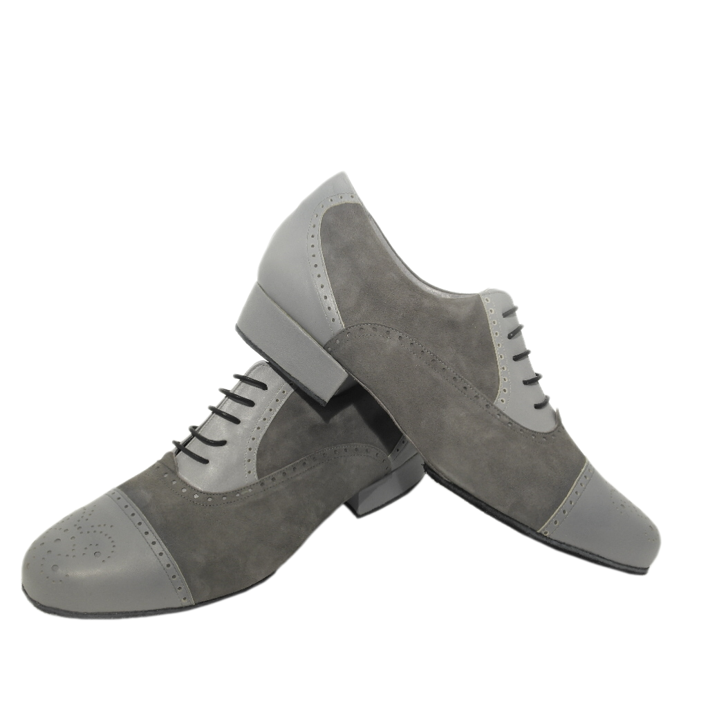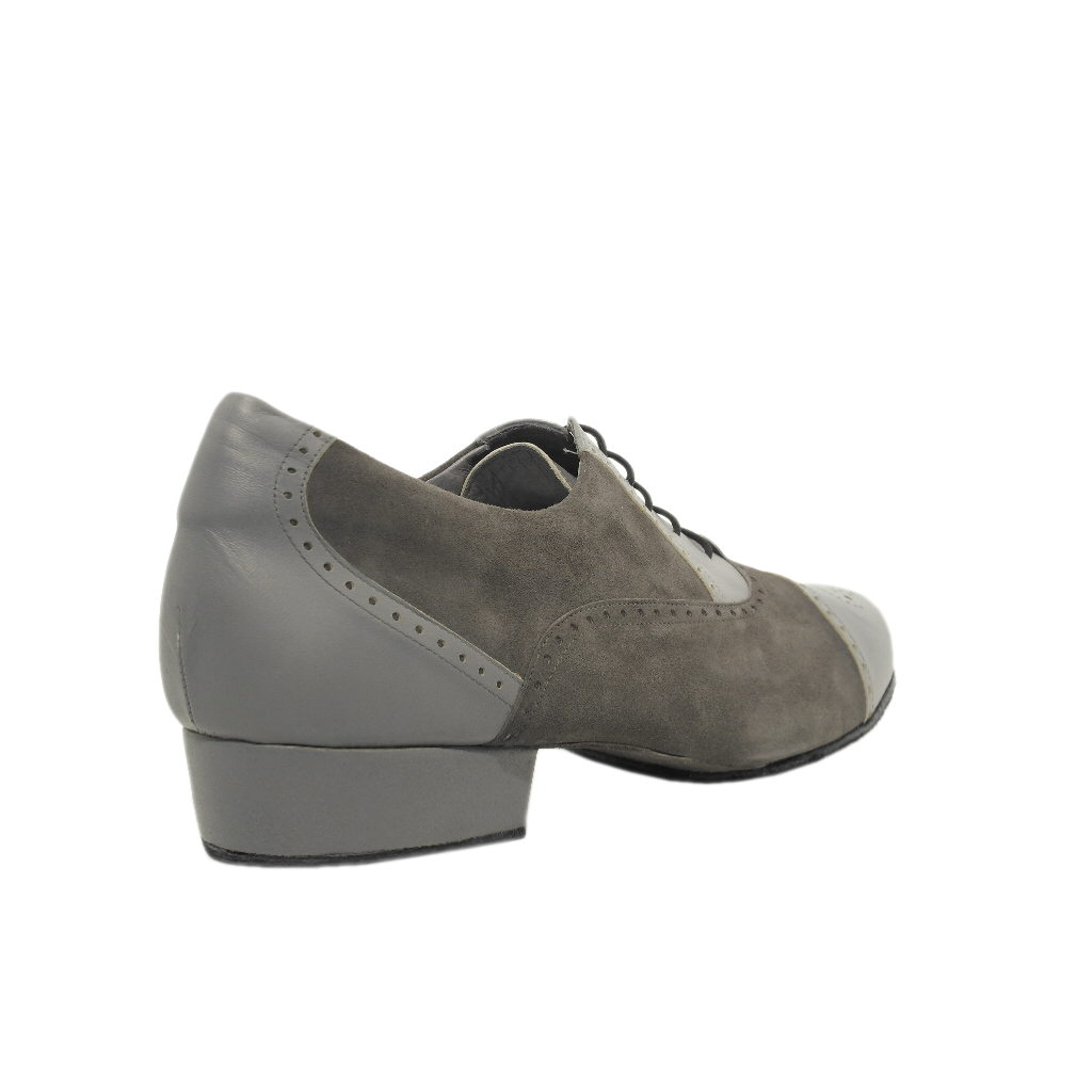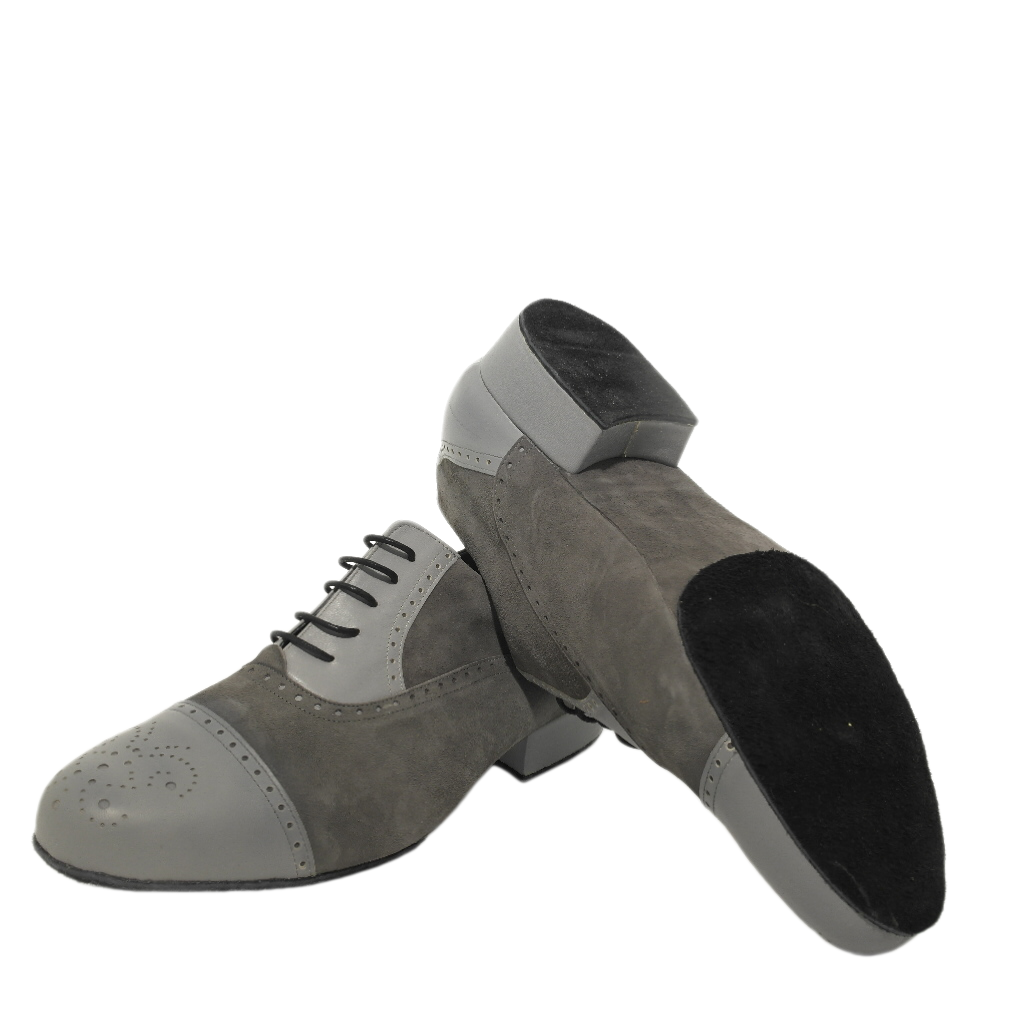Schöner Duotone Derby mit Budapester Lochverzierung, geteilter Wildledersohle und 35 mm Microsoftabsatz, der sanft Stöße und Bounces zur Schonung Deiner Gelenke abfedert