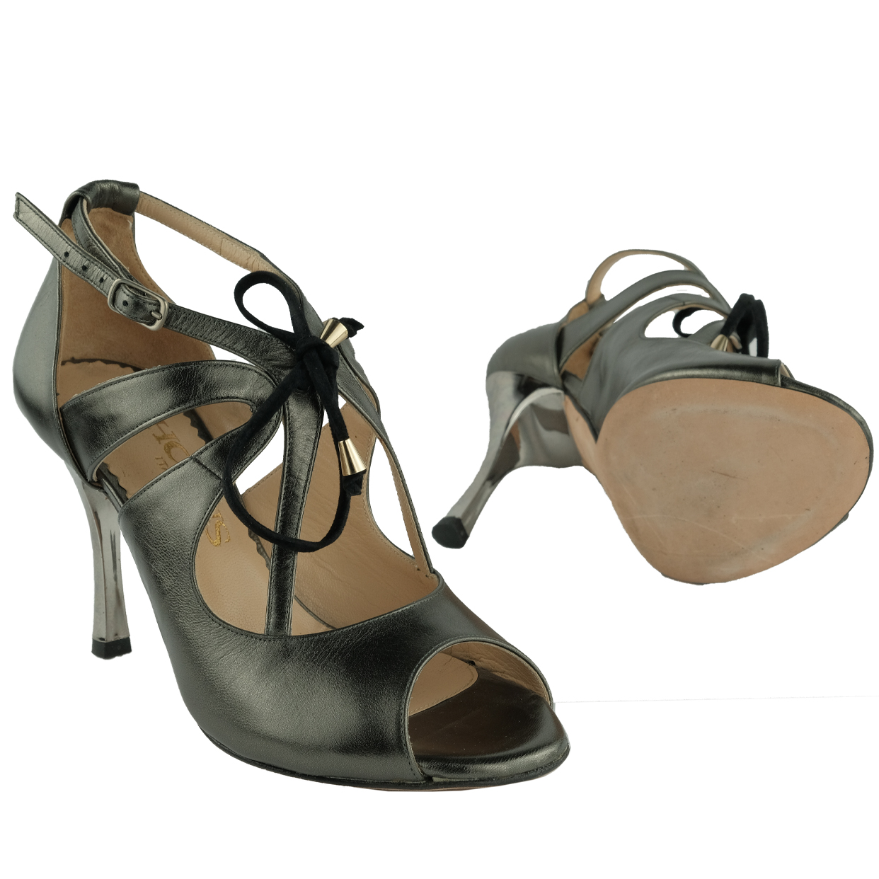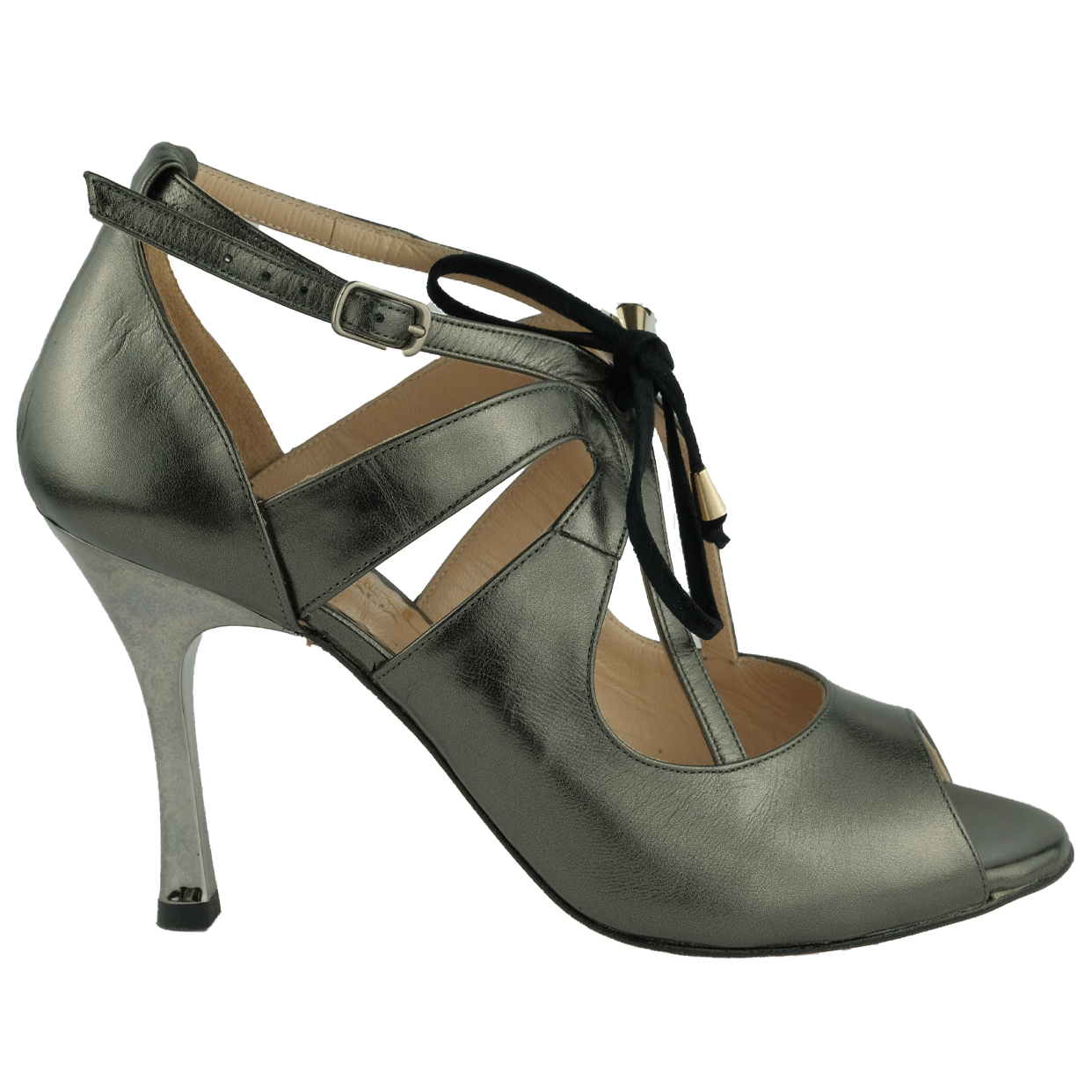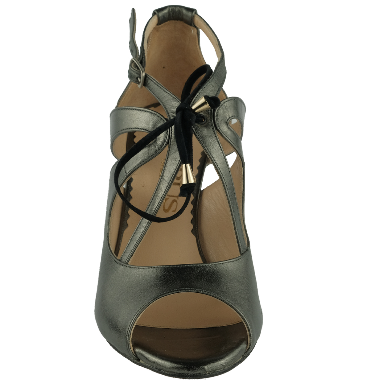 CARMEN ist ein hochgeschlossener Peeptoe mit Schnürung. Hier in der Farbe altsilber: Canna Di Fucile.
