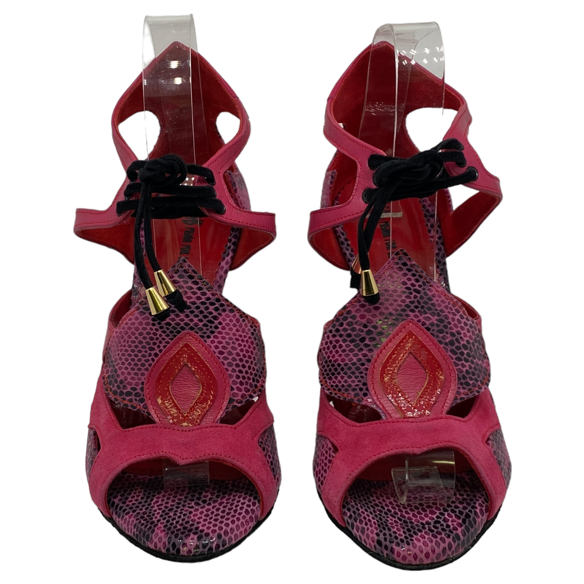 Porteño & Bailarina (Pasión Por La Danza) Modell 932 - Paquita - hier in einer Sommervariante in Fuchsia - ist Haut Couture unter den Tanzschuhen. Ein extravagantes Modell mit guter Abschäumung zwischen Deck- und Tanzsohle aus offenporigem Leder und je nach Farbvariante lackiertem, resistenten Absatz 90 mm. Das Modell besticht durch seinen ausgefallenen Schnitt mit vielen Details - durch die Ledersohle auch einfach in der Freizeit nutzbar... bist Du in etwas hineingetreten? - schmirgele es einfach wieder ab und die Sohle ist wieder griffig und weich !!