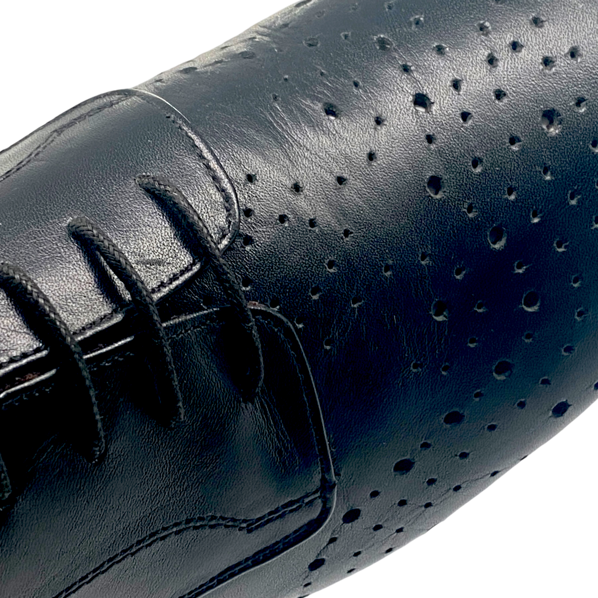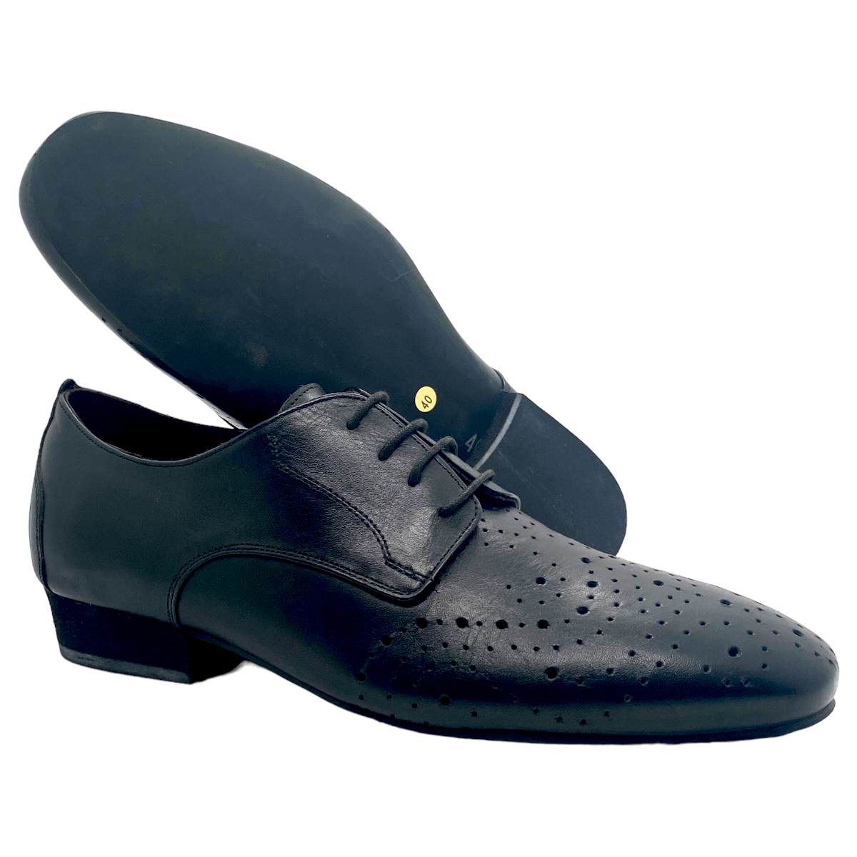 RK14 - Kalbsleder Schwarz - ausgefallener Herren Tanzschuh mit perforiertem Dekor im vorderen Bereich für gute Durchlüftung mit 35 mm MCR Absatz, shock-absorbierend und schonend für die Gelenke - eine weiche, leicht gummierte Sohle für sehr rutschige Böden oder outdoor !! - Auslaufmodell - daher so lange der Vorrat läuft.
