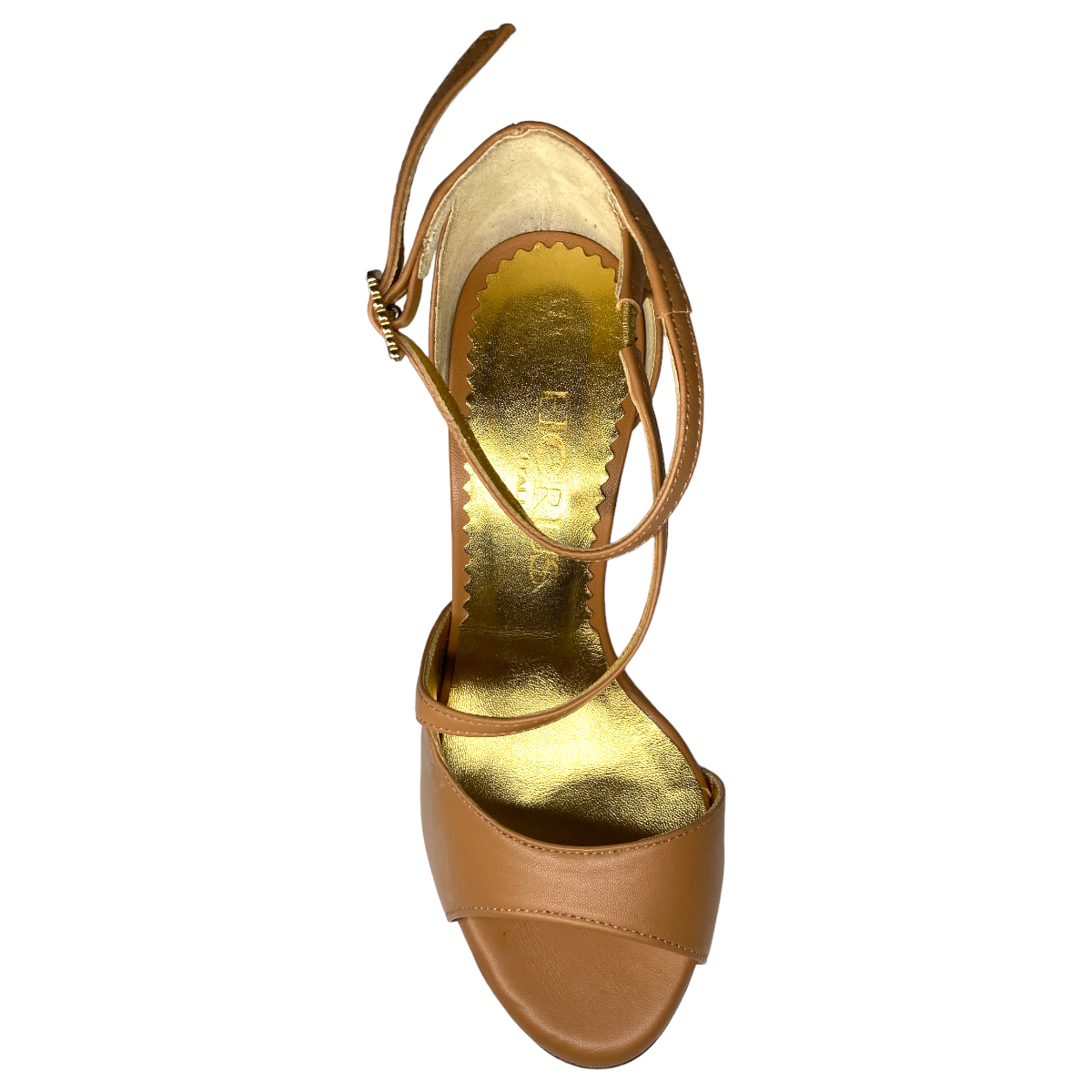 Ausgefallener Tangoschuh aus italienischer Handarbeit von Horus, Italia in nude Nappa. 90 mm... mehr