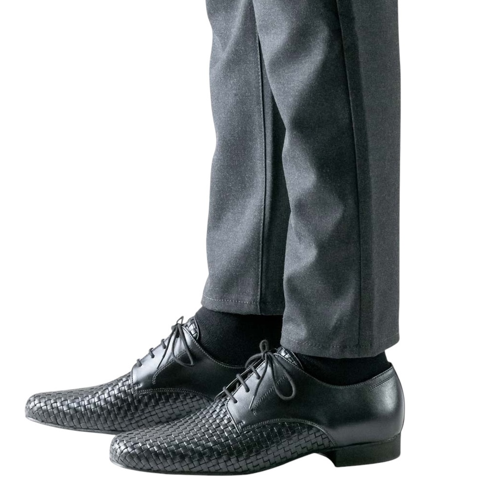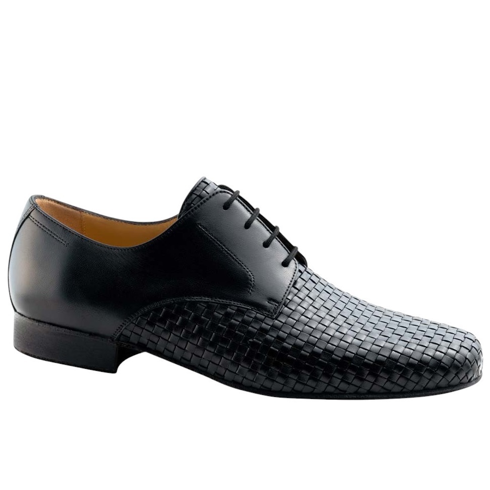 Traumhaft weicher und bequemer Werner Kern Herrentanzschuh mit vorteilhafter 4-Loch Schnürung. Die aufwendig handgeflochtene Vorderfußpartie ist optisch einmalig und passt sich dank ihrer Flexibilität jedem Fuß individuell an und gibt so perfekten und äußerst bequemen Halt. Ausgestattet ist der Schuh mit einem handschuhweichen Kalblederfutter.