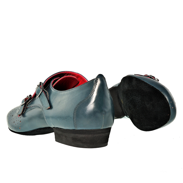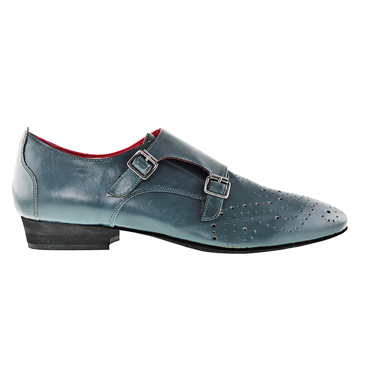 RK11 - Newcast Pepper - ausgefallener Herren Tanzschuh mit Zier-Schnallen und perforiertem Leder im vorderen Bereich in der Farbe Petrol mit 35 mm MCR Absatz, shock-absorbierend und schonend für die Gelenke - eine weiche, griffige Wildledersohle - Innenfutter Leder, rot