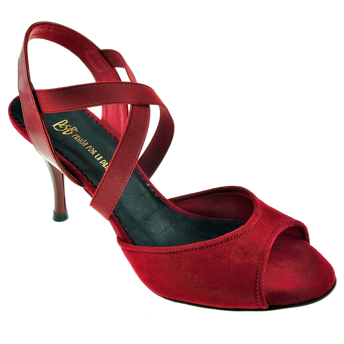 Die praktischste Erfindung seit es Tangoschuhe gibt... schnell rein und schnell raus mit den Modellen der "Elasticos"-Serie. Kein lästiges Auf- und Zumachen mehr in der halbdunklen Milonga. In LA TANA schlüpfst Du in Sekunden und verpasst keinen Takt Deiner Lieblingstanda. Hier die Variante /A mit schmalerem Elastik. 80mm oder 90mm Absatz. Die Sohle wie immer extrem gut abgeschäumt mit einer Schäumung mit hoher Dichte. So bleibt sie lange schön stabil, pflanzengefärbt in Europa. Eine griffige Wildledersohle und gute Statik, immer groß geschrieben bei Porteño & Bailarina-  hier in weichem, rotem Wildleder mit praktischen Elastikbändern überm Spann gekreuzt - kein lästiges Auf und Zumachen von kleinen Schnallen in dunklen Milongas mehr !!  - das Elastik ist haltbar und engt nicht ein. Die Slingferse ist aus rotem Lackleder gefertigt. Achtet darauf, das unsere Absätze mit den Grössen wachsen. Ein Absatz = 80mm wird standardmäßig bei Grösse 37 gemessen. Daher lagern wir die Grössen ab 40 meist nur mit dem 80er Absatz, denn bei 41 wäre dieser schon 85mm hoch. Wir produzieren aber gerne auf Wunsch auch mit einem höheren Absatz.