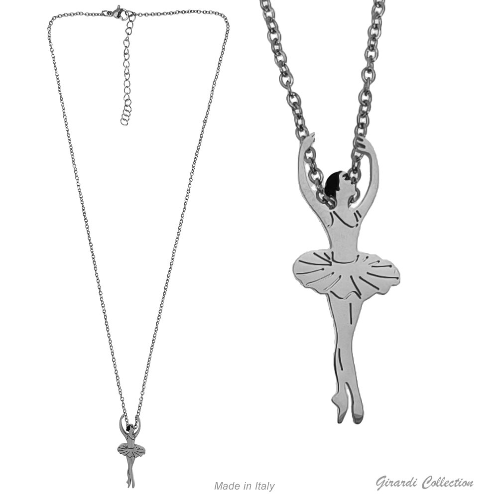Halskette mit Ballerina-Anhänger aus Chirugen Stahl, nickelfrei - inklusive Geschenkbox - silber- oder goldfarben