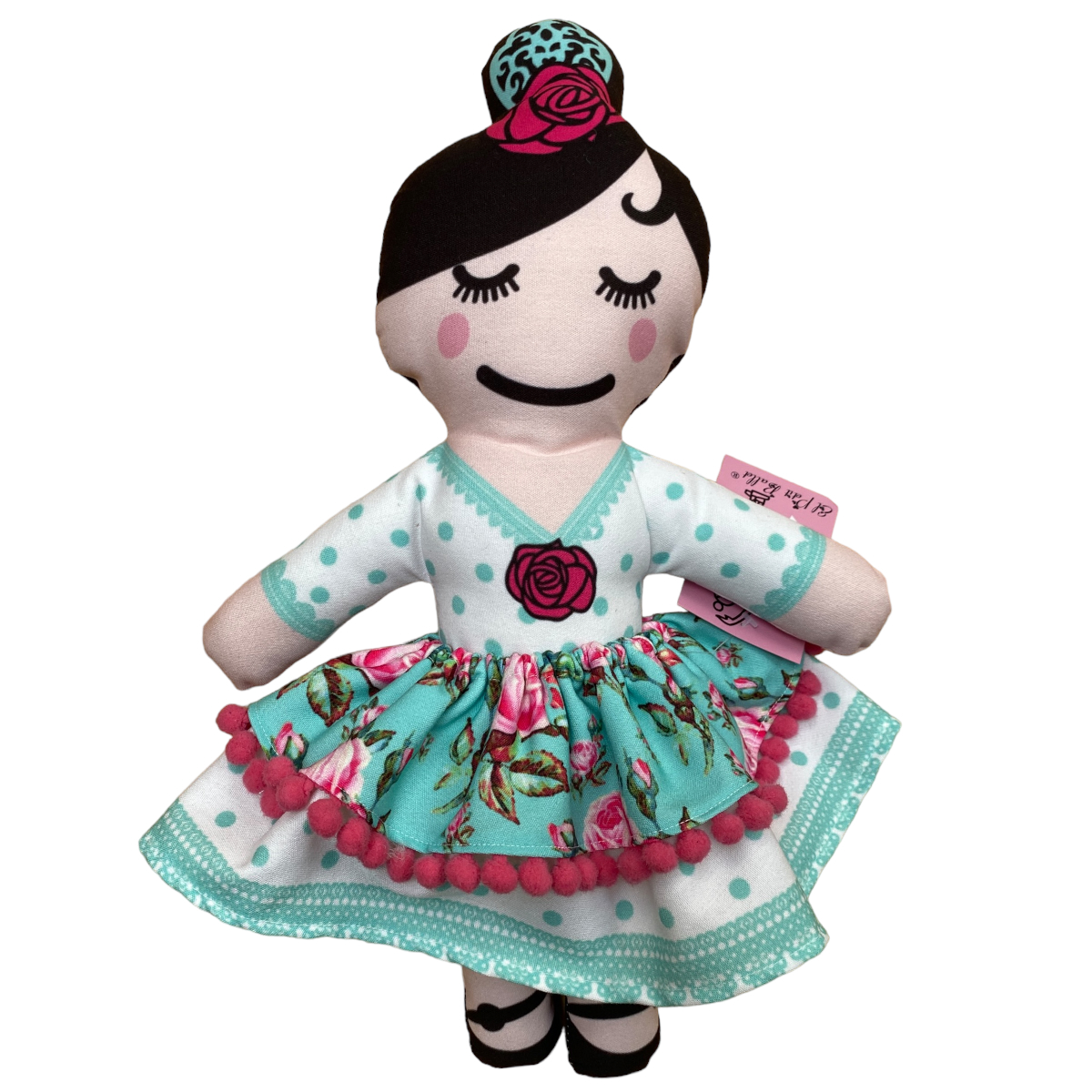 Wunderschöne Puppe aus der Les Nines-Kollektion, geschaffen, um die Fantasie und Kreativität jedes Kindes anzuregen. Hier mit dem Motiv Lola23 in mintgrün und rosa.. Aufwendig verziert mit den typischen kleinen Bommeln am Folklore-Rock.