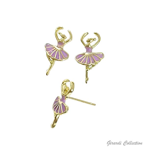 Goldene Ohrstecker mit emailliertem Ballerina-Motiv