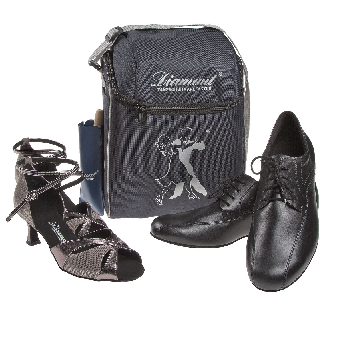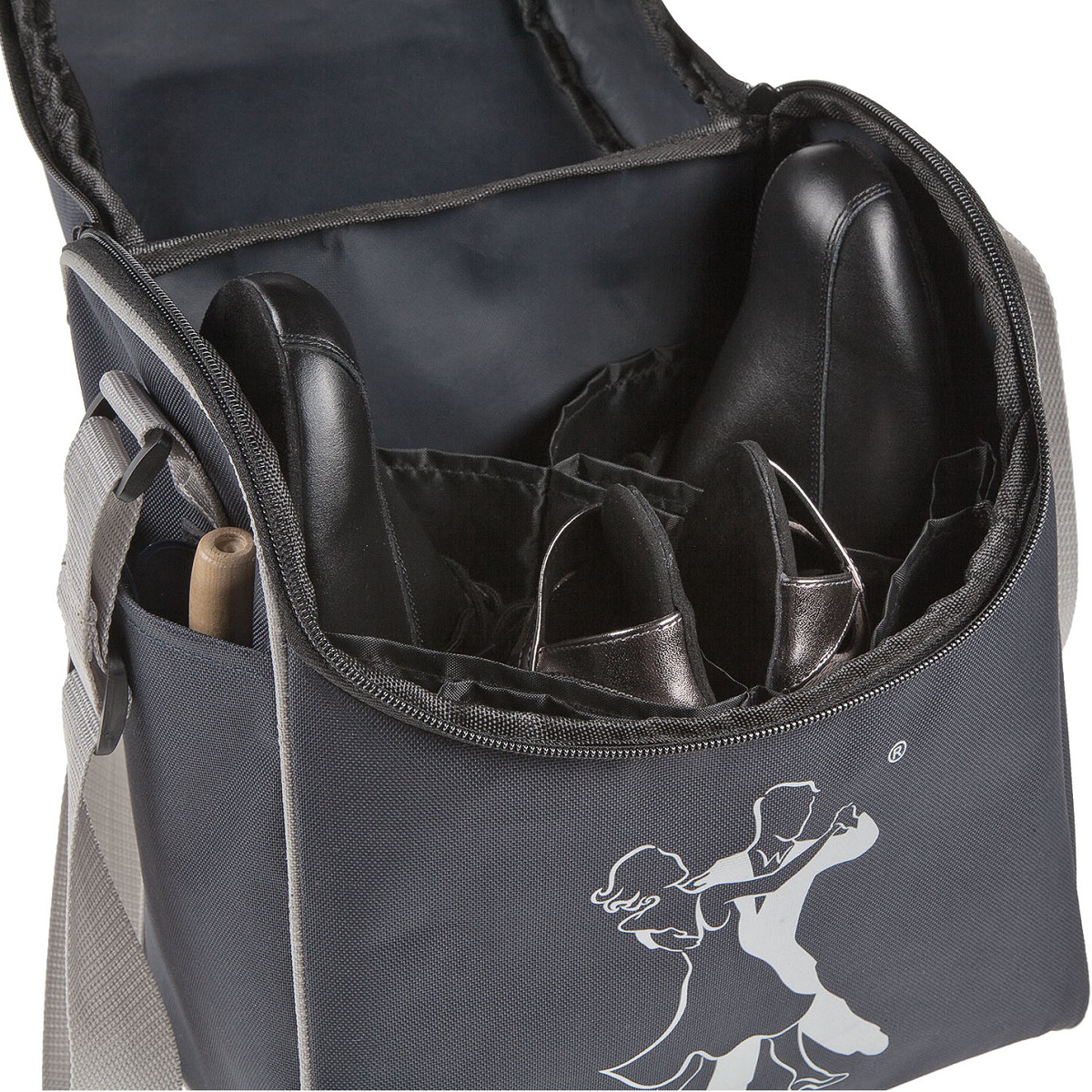 Eine blaue Schuhtasche mit Trageriemen zum Umhängen. Die Tasche ist für die Aufbewahrung und den Transport für 1-2 Paar Schuhe und Zubehör geeignet. Ein herausnehmbarer Kratzschutz schützt die Schuhe vor gegenseitiger Reibung.
